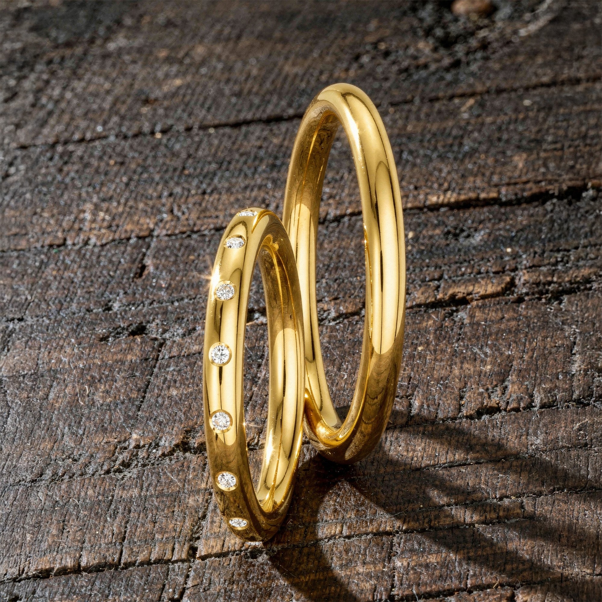 Schmale Trauringe mit Highlights.